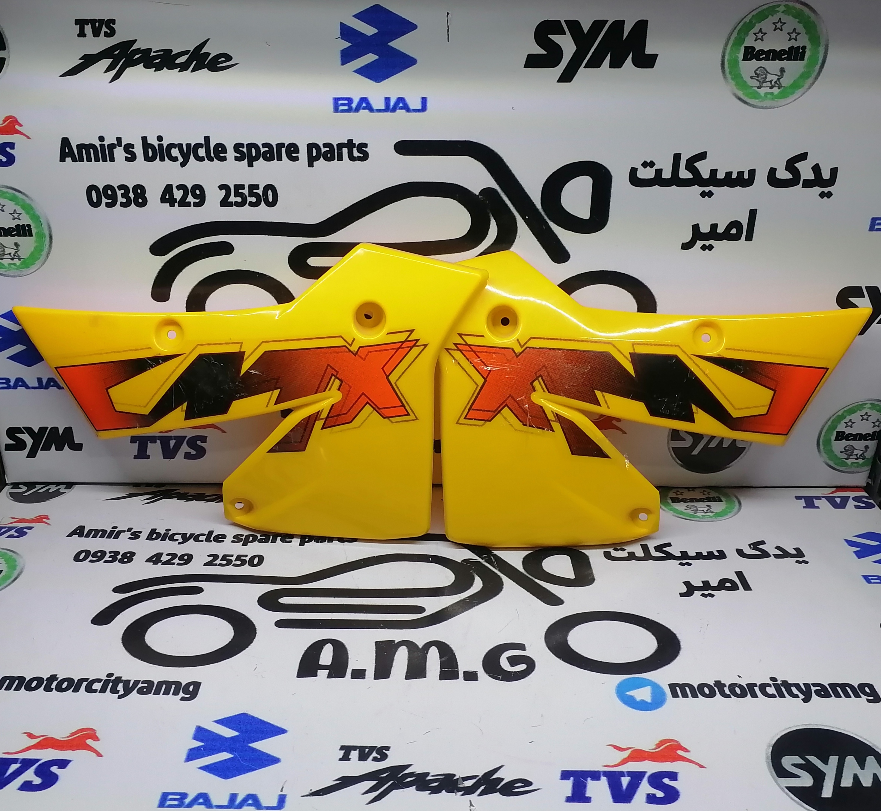 کنسول عقب قاب (کاور فلاپ دمی) درب بغل کامل موتور تریل فلات طرح ktm کی تی ام زرد