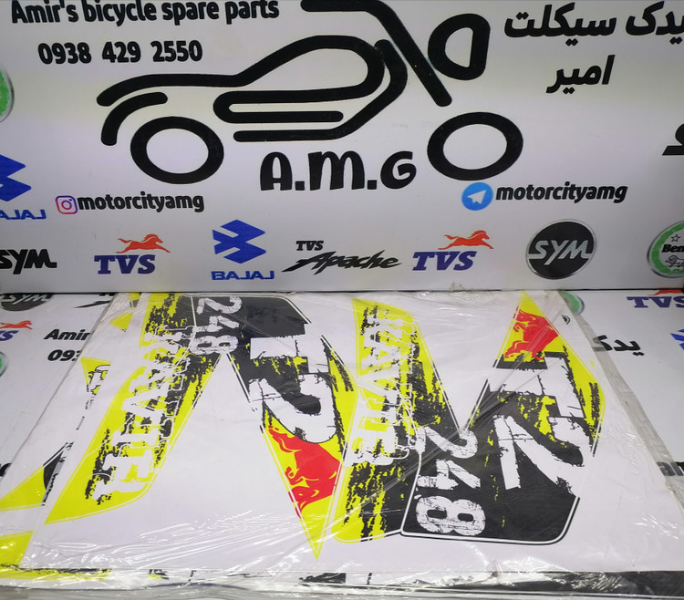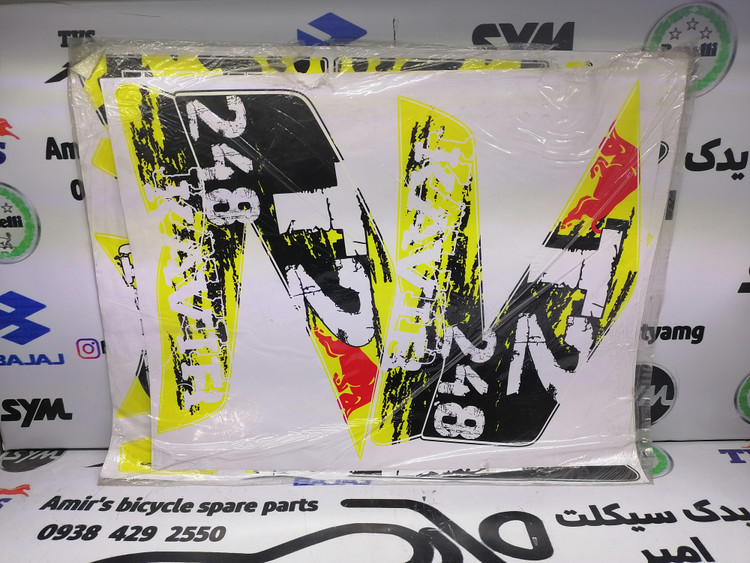 ارم (برچسب) استیکر کامل بدنه موتور تریل T2 تی دو (زرد)