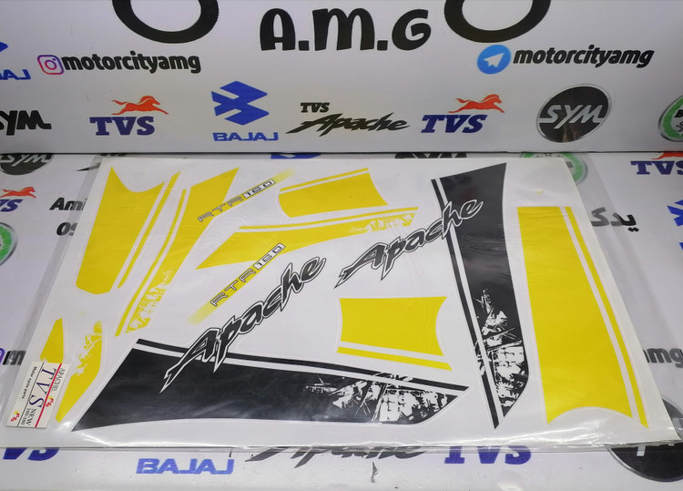 ارم (برچسب) استیکر کامل بدنه موتور آپاچی 160 رنگ زرد مشکی