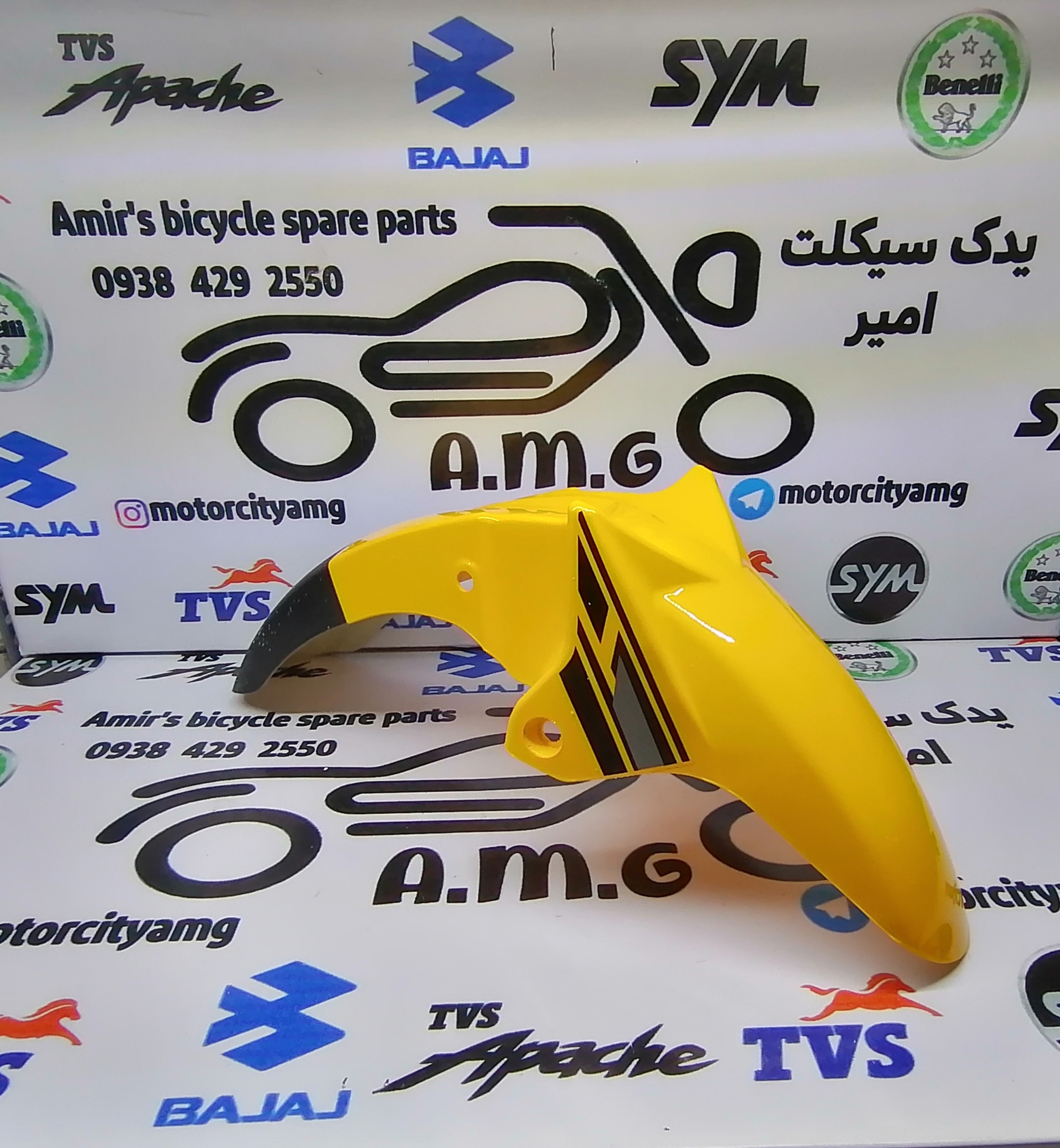 گلگیر جلو موتور دلتا CRT 160 نقش حیاتی در زیبایی موتور و جلوگیری از پاشش گِل و آب به انجین و سوارکار دارد. این گلگیر با رنگ زرد فابریک موتور، دارای: